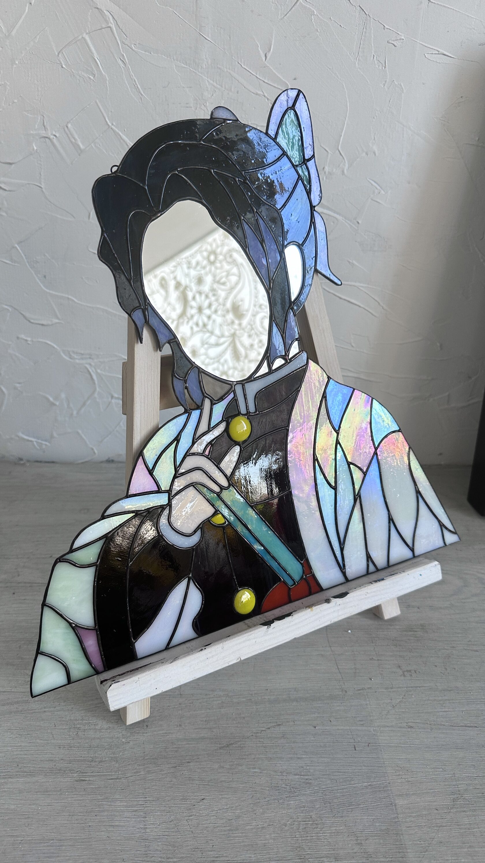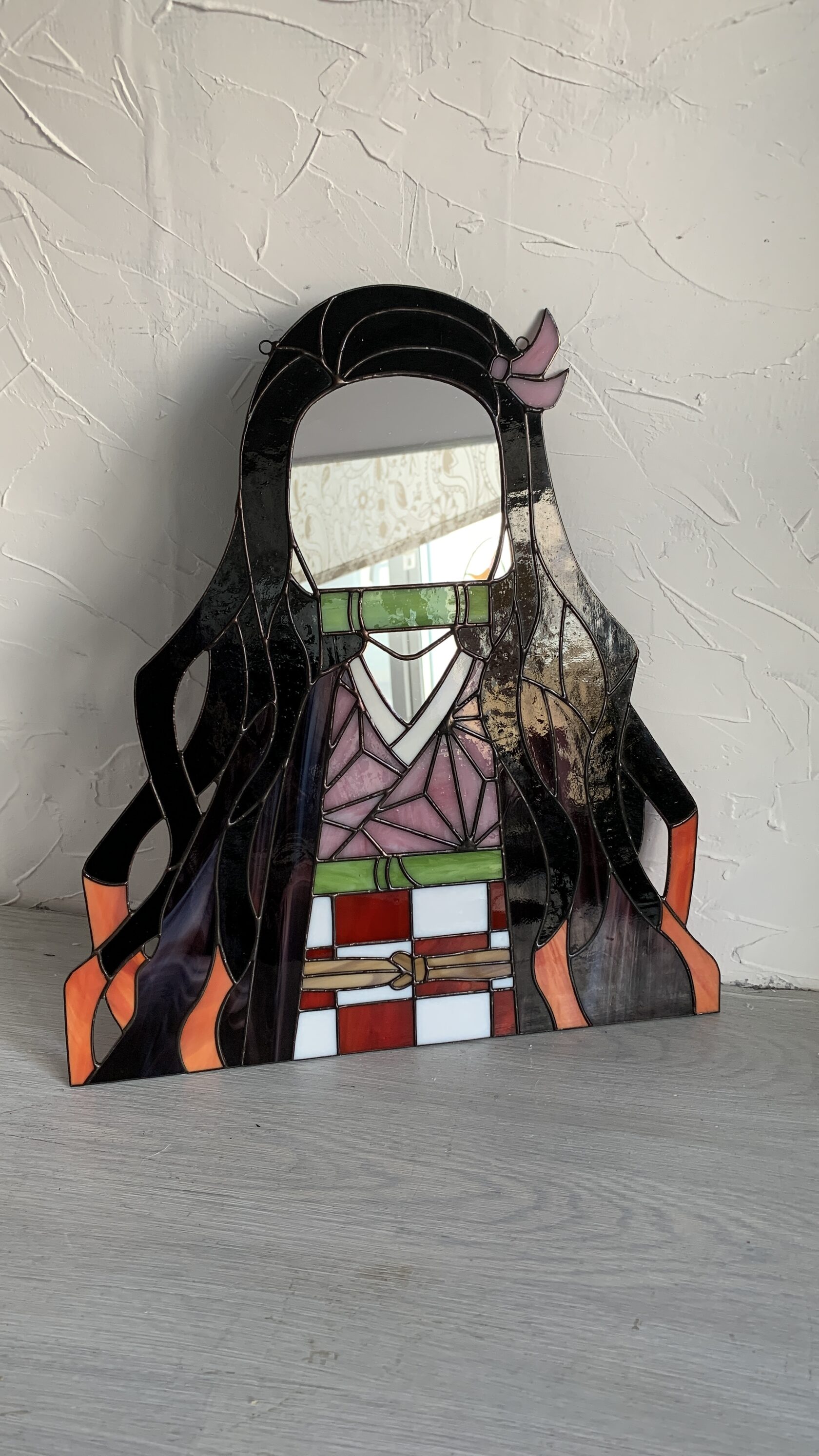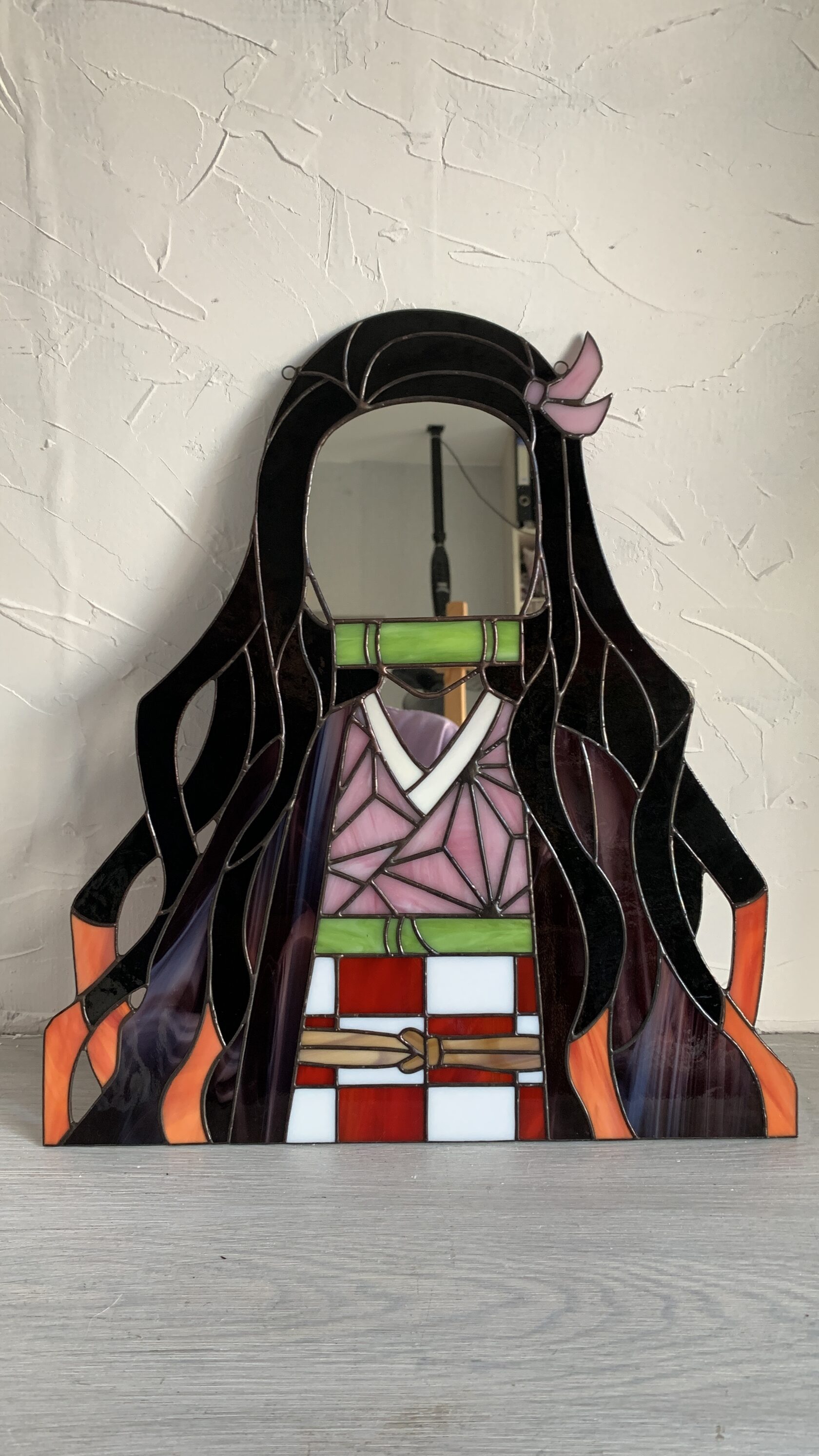 Твое отражение в любимом герое. Витражное зеркало по мотивам аниме «Клинок рассекающий демонов». Полностью ручная работа. В единственном экземпляре без повтора.