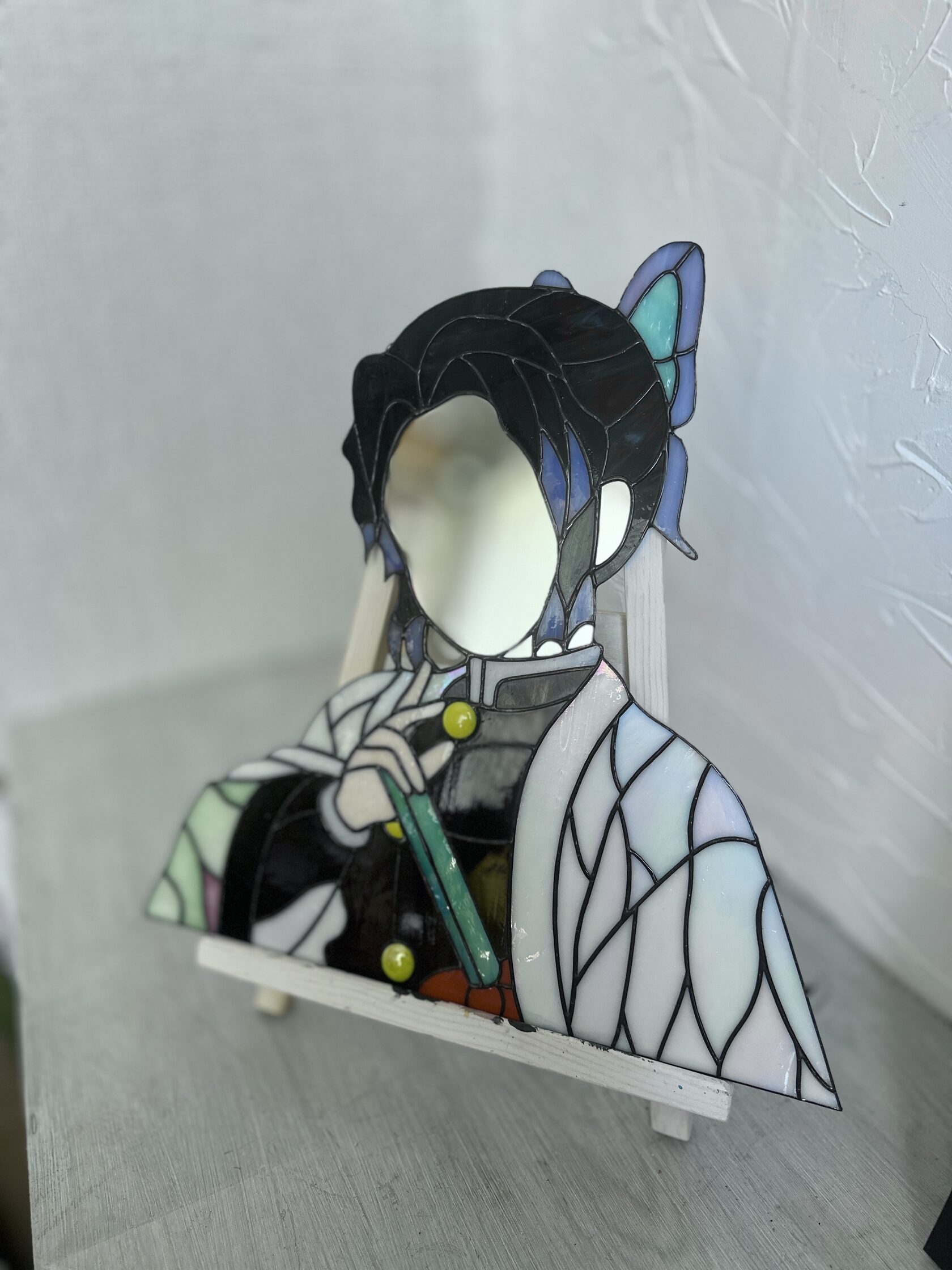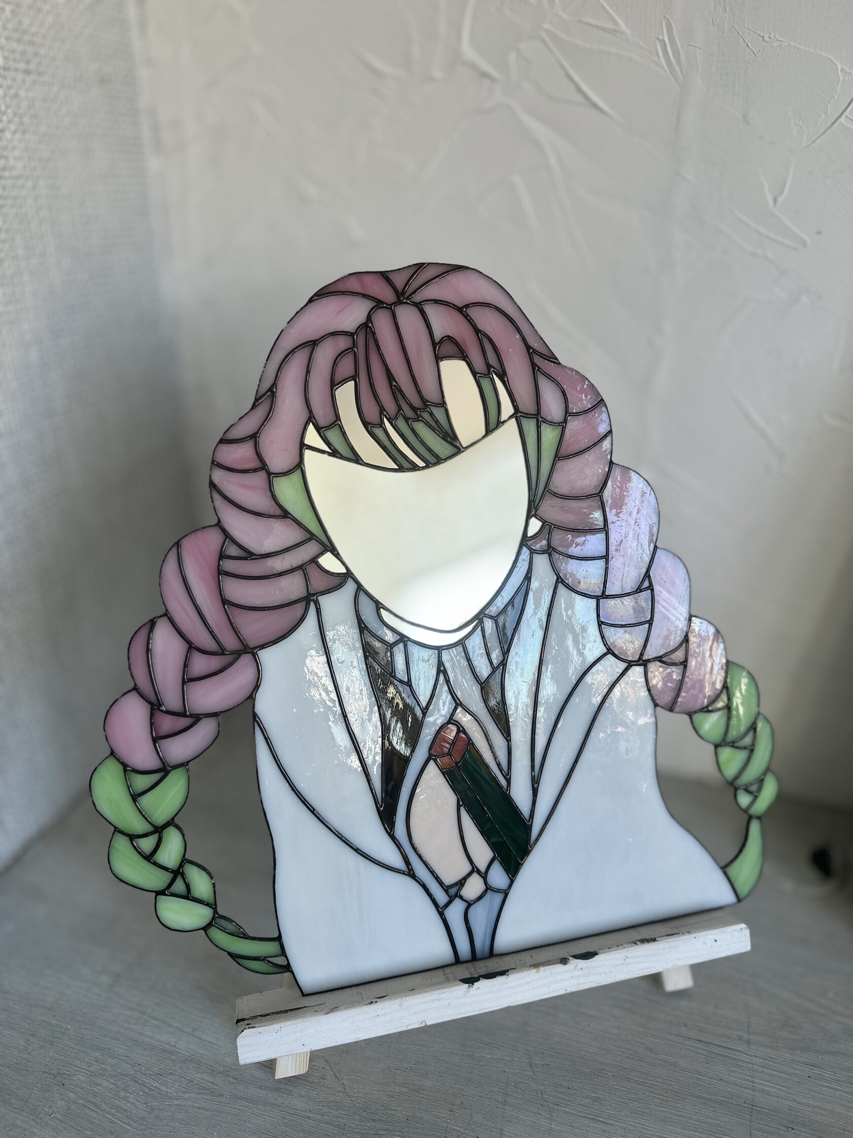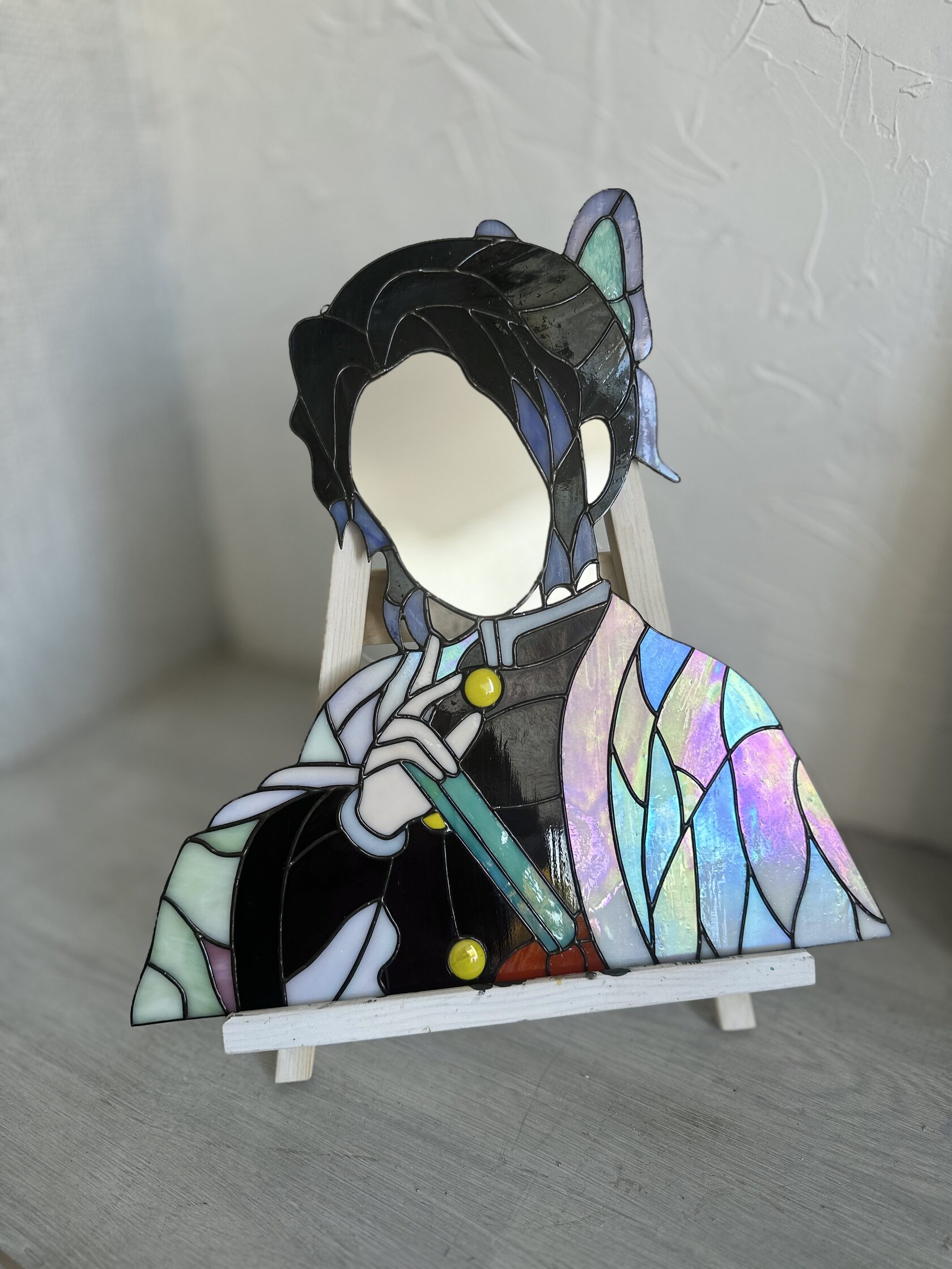 Твое отражение в любимом герое. Витражное зеркало по мотивам аниме «Клинок рассекающий демонов». Полностью ручная работа. В единственном экземпляре без повтора.