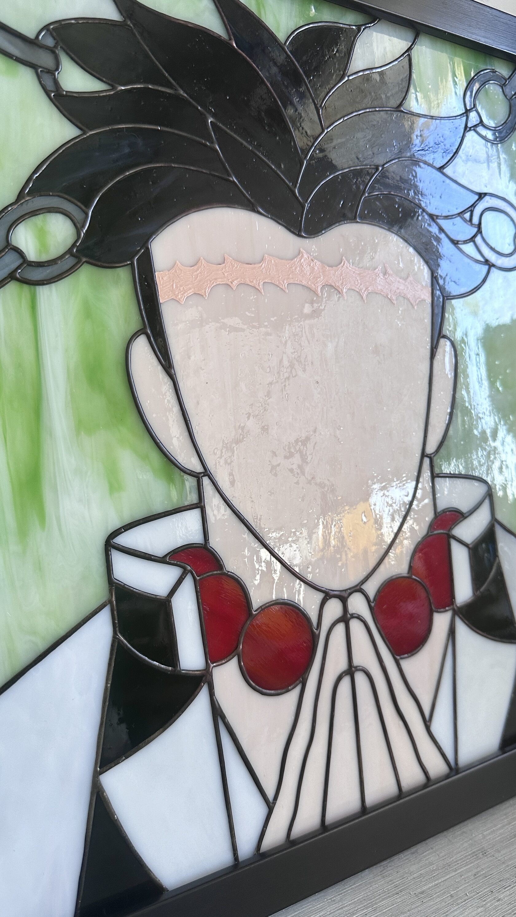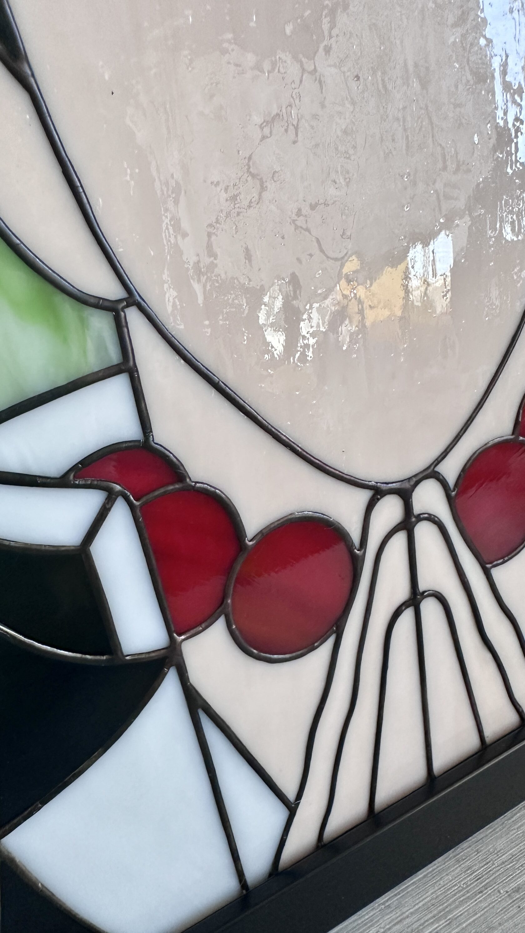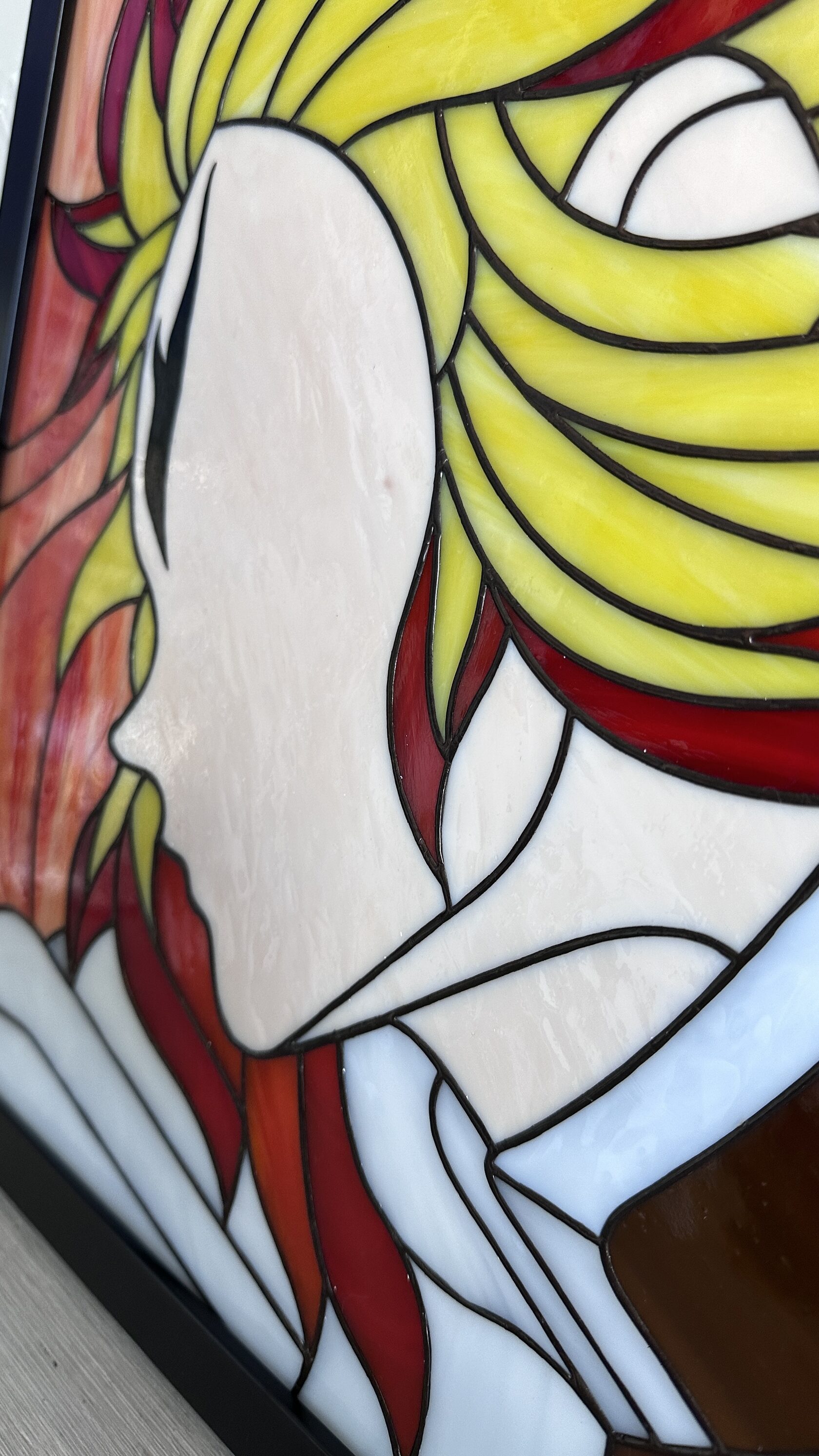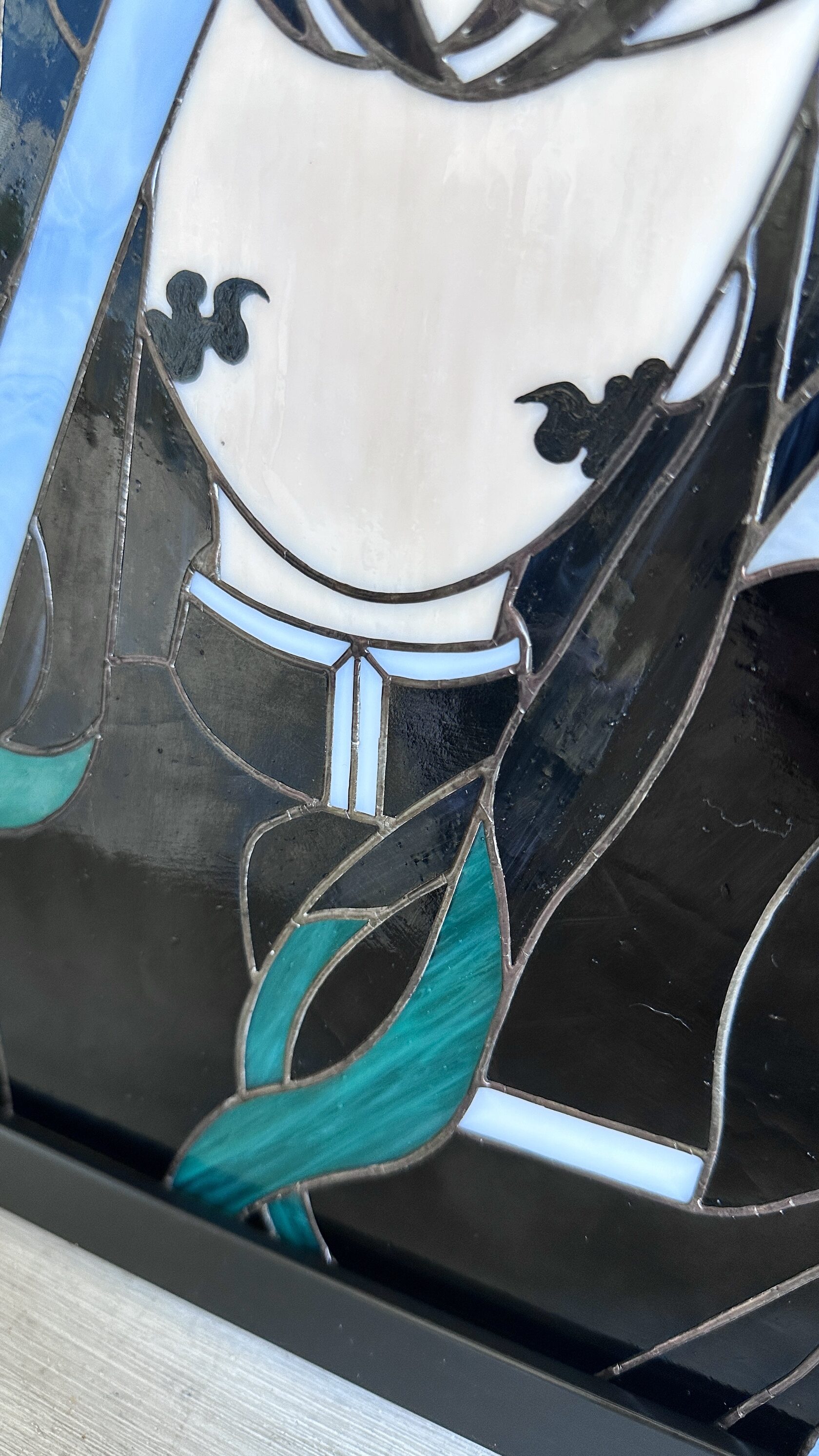 Витражное панно по мотивам аниме «Клинок рассекающий демонов». Выполнена подсветка. Работает от сети. Полностью ручная работа. В единственном экземпляре без повтора.