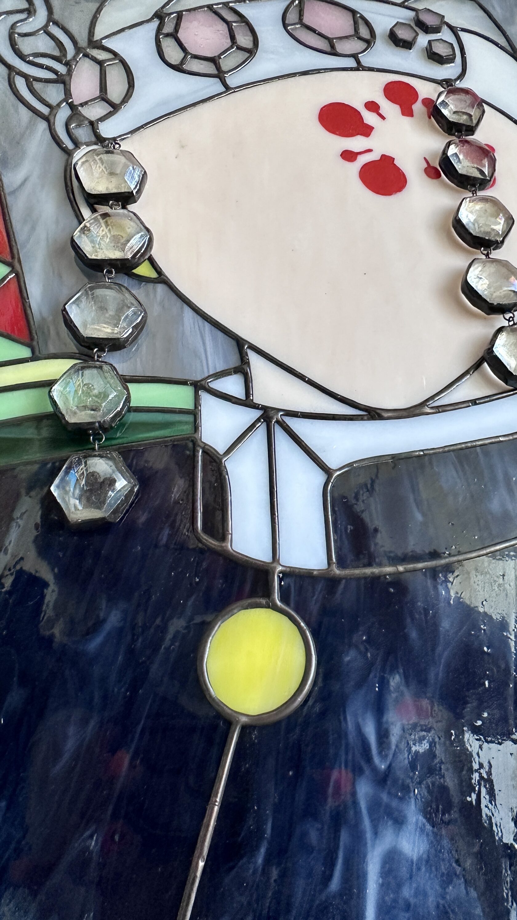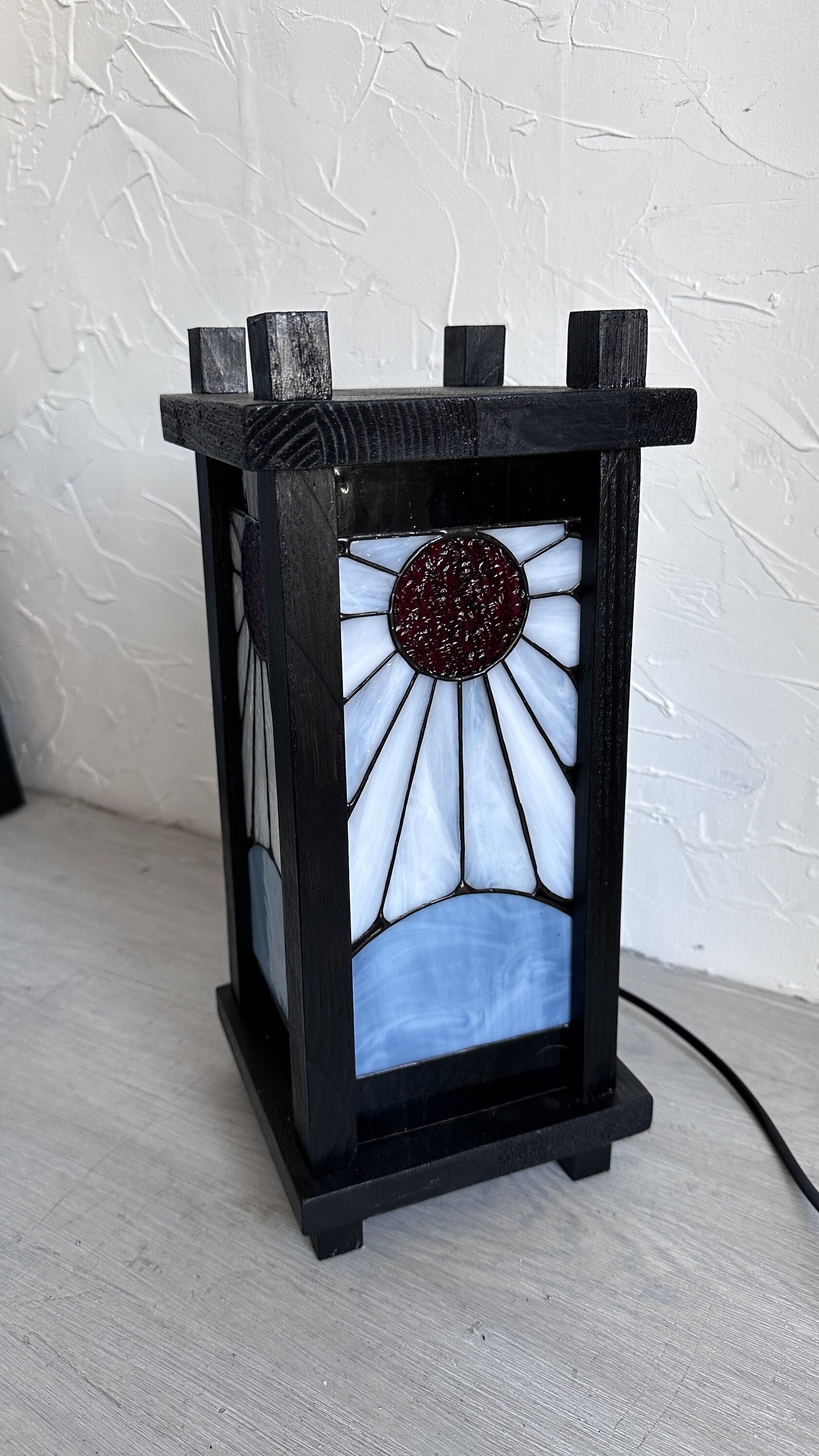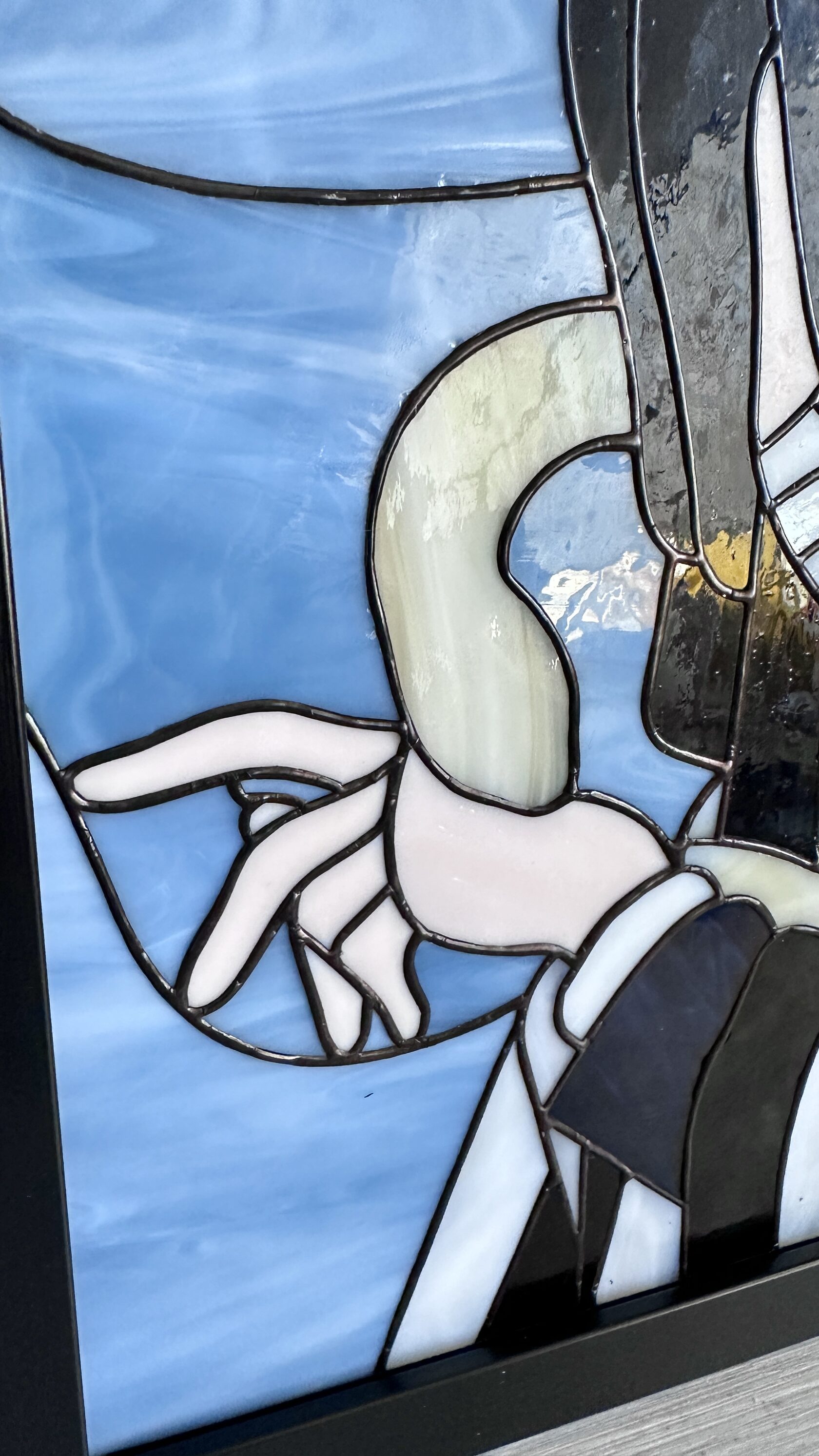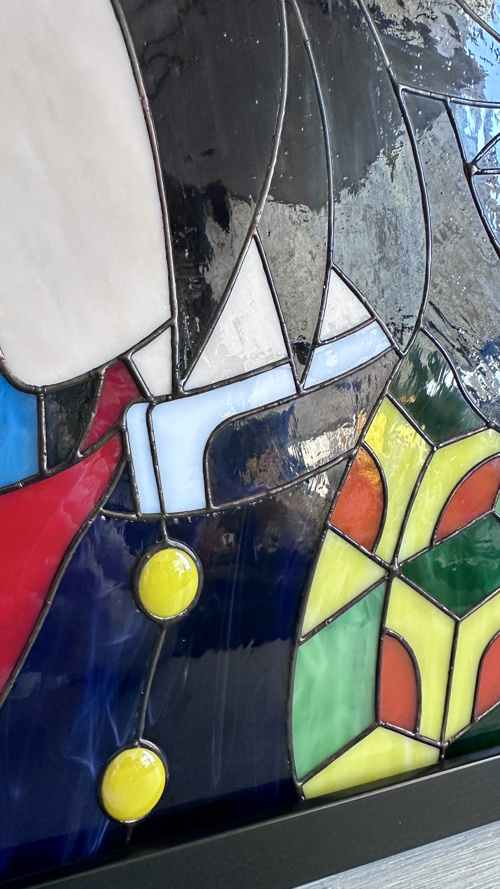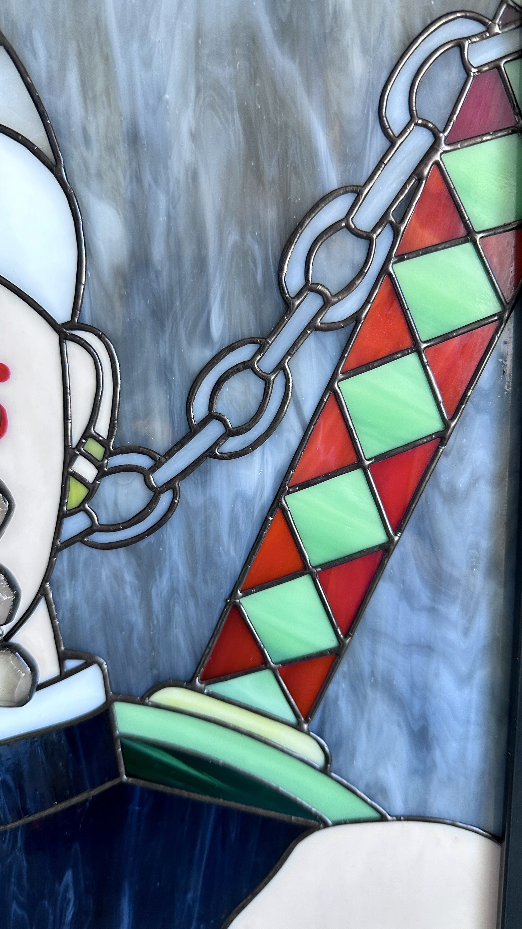 Витражное панно по мотивам аниме «Клинок рассекающий демонов». Выполнена подсветка. Работает от сети. Полностью ручная работа. В единственном экземпляре без повтора.